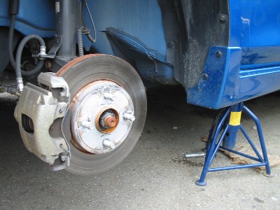| 1) | ジャッキアップしてウマかけて、タイヤ外して、 さぁ作業にかかります(゚∀゚)b |