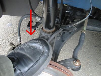 | 2) | ブレーキライン(太い方)と、ABSのライン(細い方)を、 外します。 |