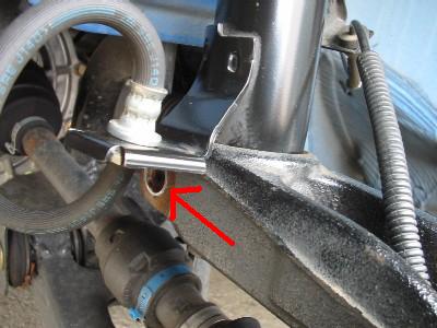 | 5) | ショックの一番下のところの、横向きに刺さっているボルトを 外します。 |