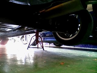 | 3) | ジャッキアップして、ウマをかけます。 |