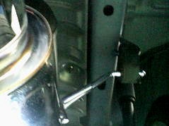 | 7) | では、取り付けにはいります。ステーにラバーリングをはめ、吊るします。 いちばん後ろ。 |
